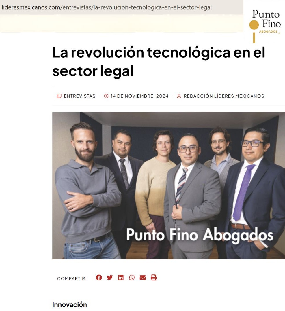 "El último año ha sido importante para Punto Fino, Abogados, S.C., ya que se consolidó dentro de los 50 Mejores Despachos de Abogados de México por diversas revistas especializadas (TOP, Consultor...